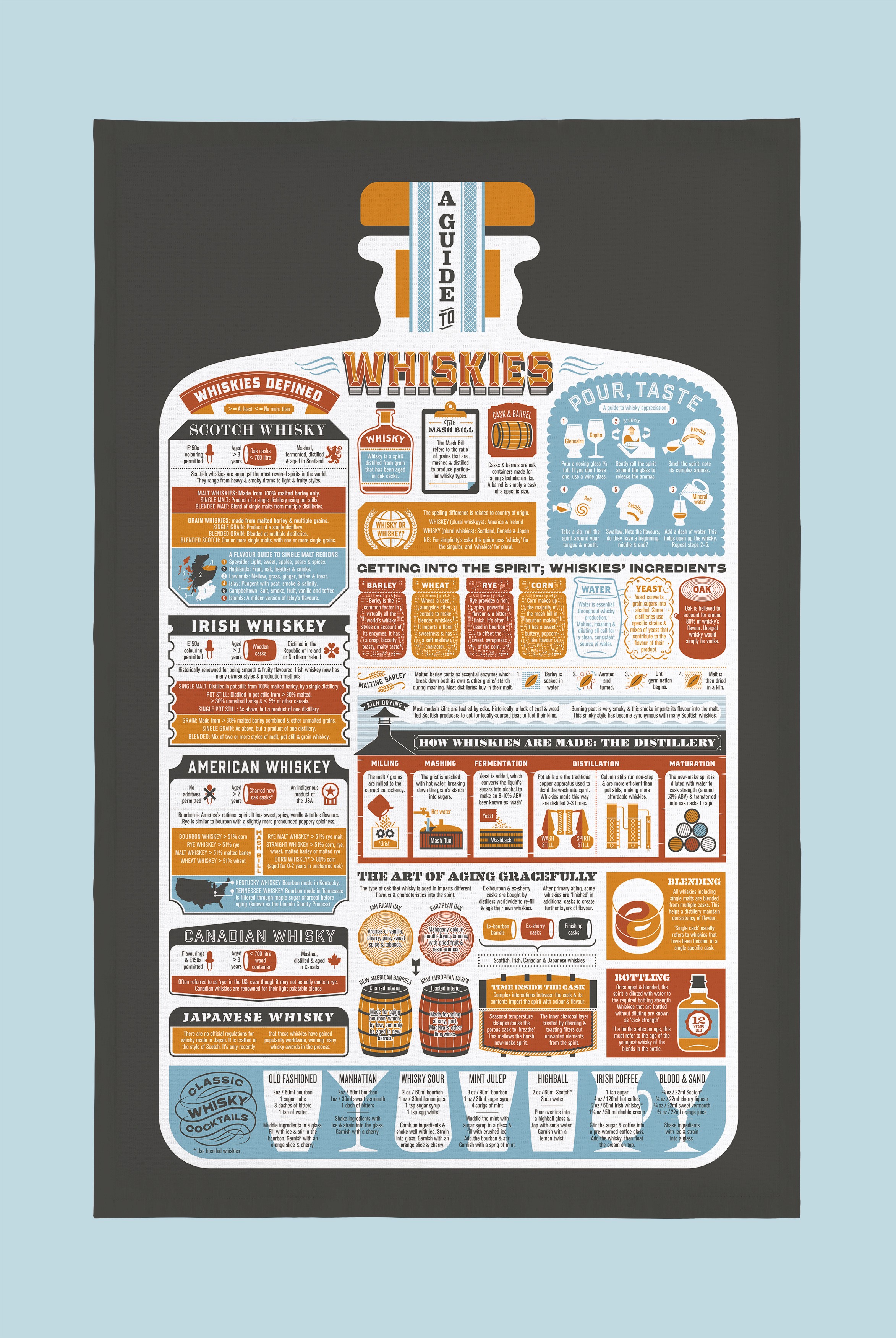 Our first project was a tea towel named ‘A Seasonal Guide to Fruit & Vegetables’. To our delight, it was a big hit, showing us there’s a real appetite for our blend of food and drink infographics in a quirky design.